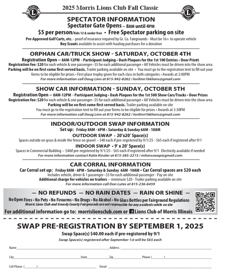Grundy County Fairgrounds Morris, IL. 8am Details