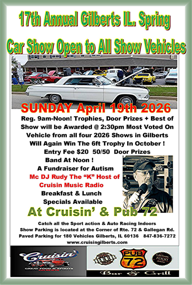 Rte. 72 & Galligan Rd. Gilberts, IL. 9am