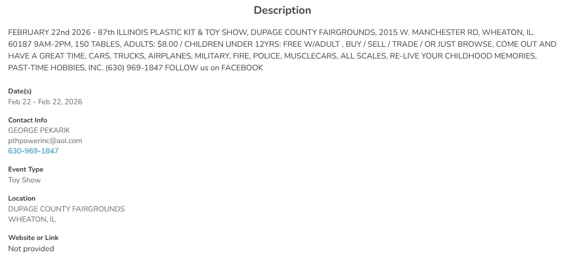 Kane County Fairgrounds St. Charles, IL. 8am-2pm Details