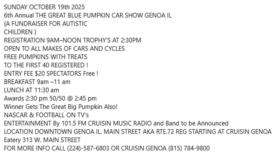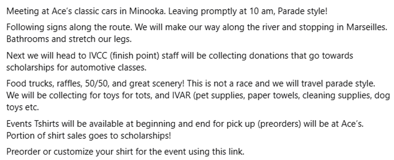 Kendall County Fairgrounds Yorkville, IL. 8am Details