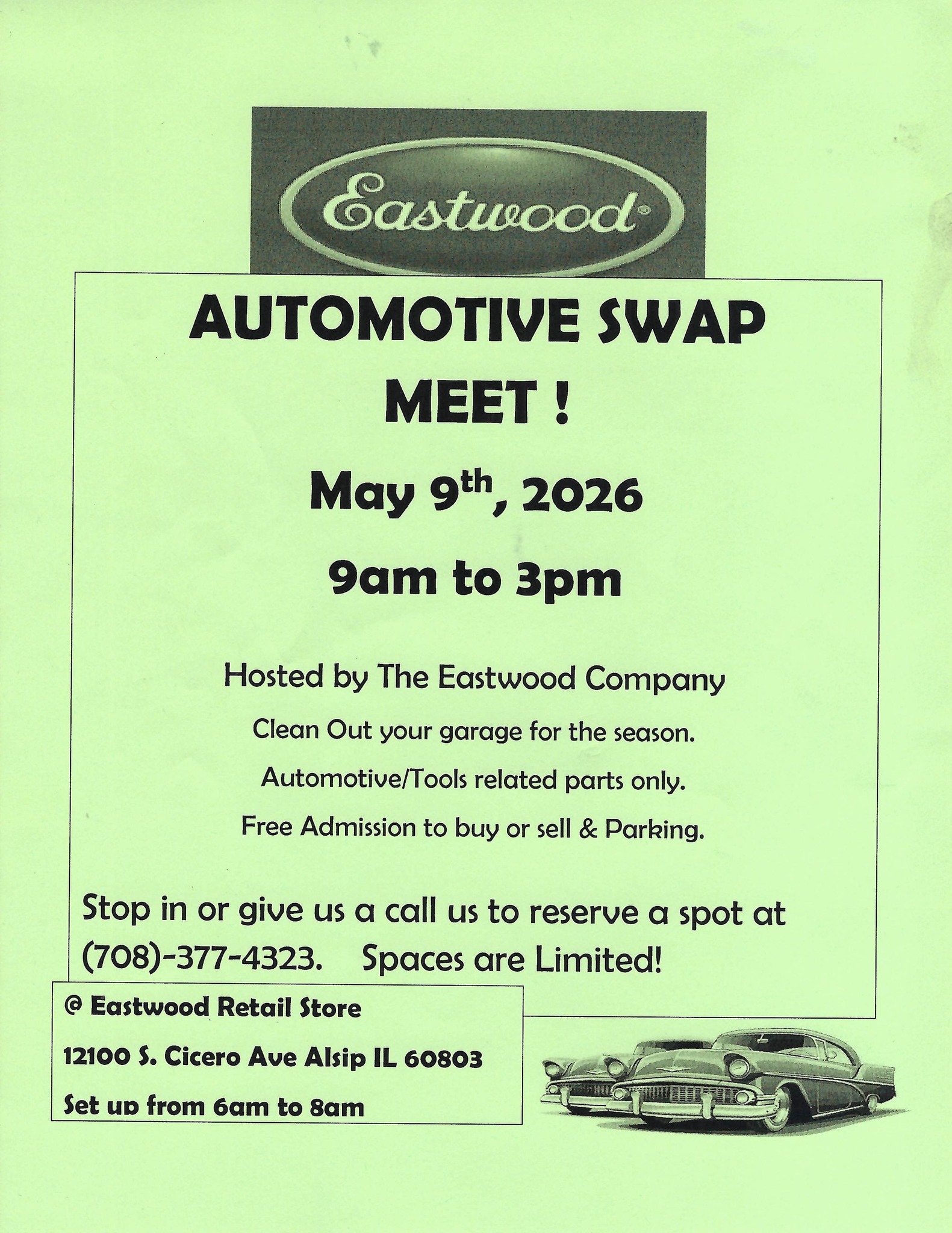 Eastwood 12100 S. Cicero Ave. Alsip, IL. 9am-3pm